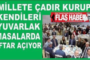 MİLLETE ÇADIR KURUP KENDİLERİ YUVARLAK MASADA İFTAR YAPIYOR Eyüpsultan’lı bir arkadaşımız sosyal medyada Eyüpsultan belediyesinin lüks ve yuvarlak masalarda iftar açmasını, bunu da marifetmiş gibi resim paylaşmalarını eleştirirken dikkatimizden kaçmadı. BAKIN ARKADAŞIMIZ NE YAZMIŞ, “Eyüp belediyesinde oruç tutmayan üst yönetim her akşam iftar sofrasında..!! Oruç.Tutup tutmamaları onları ilgilendiriyor, fakat o …