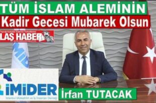 İrfan Tutacak Kadir Gecesi Mesajı Yayınladı İstanbul Müteahhit ve İş İnsanları Derneği Başkanı İrfan Tutacak, Kadir Gecesi dolayısıyla bir mesaj yayımlayarak barış ve kardeşlik dileğinde bulundu. Tutacak mesajında şu ifadelere yer verdi: “Mübarek Ramazan ayının en özel gecelerinden ‘Bin aydan daha hayırlı’ olan Kadir Gecesi’ne ulaşmanın mutluluğunu yaşıyoruz. Birlik ve …
